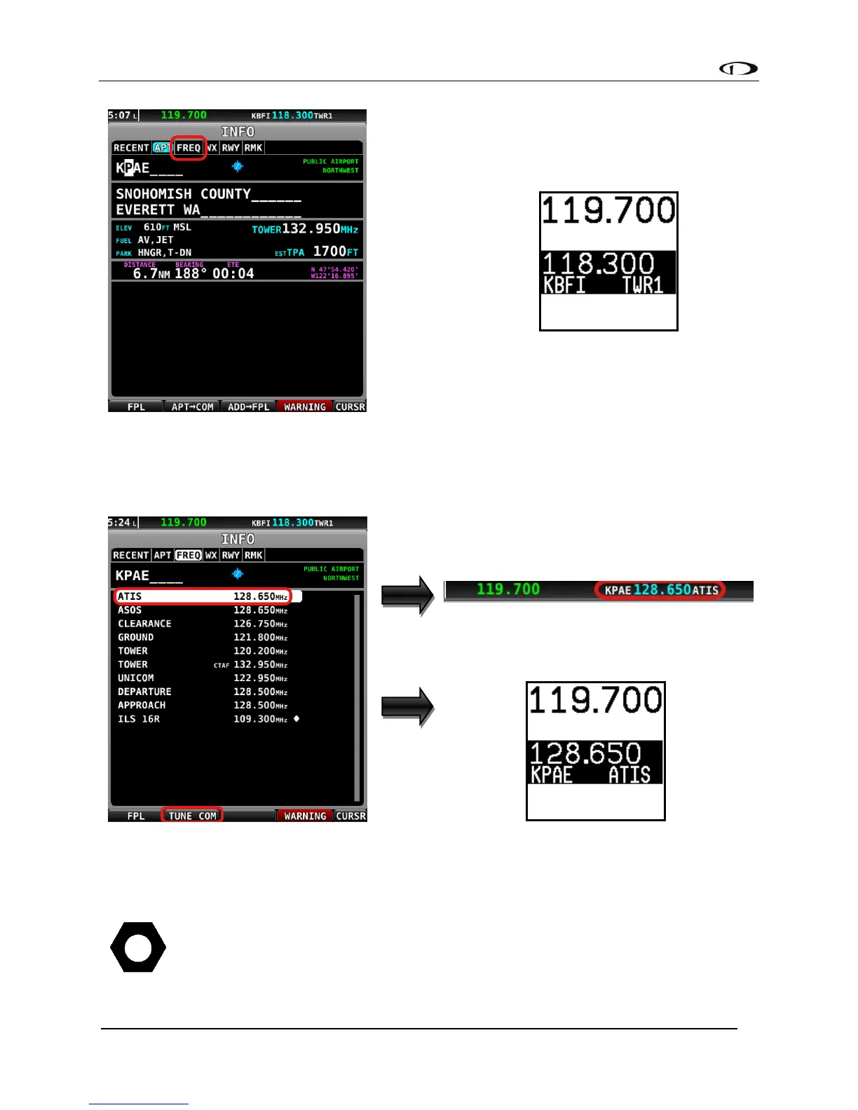 8.33kHz on the SV-COM-X83) press the TUNE COM button to send the frequency to the