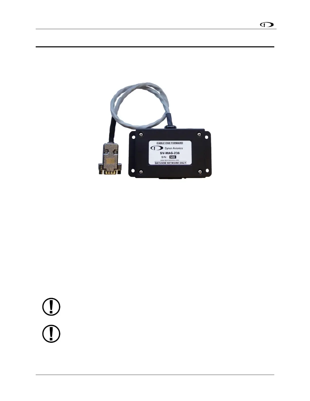 The SV-MAG-236 provides SkyView with the magnetic heading data. To minimize the