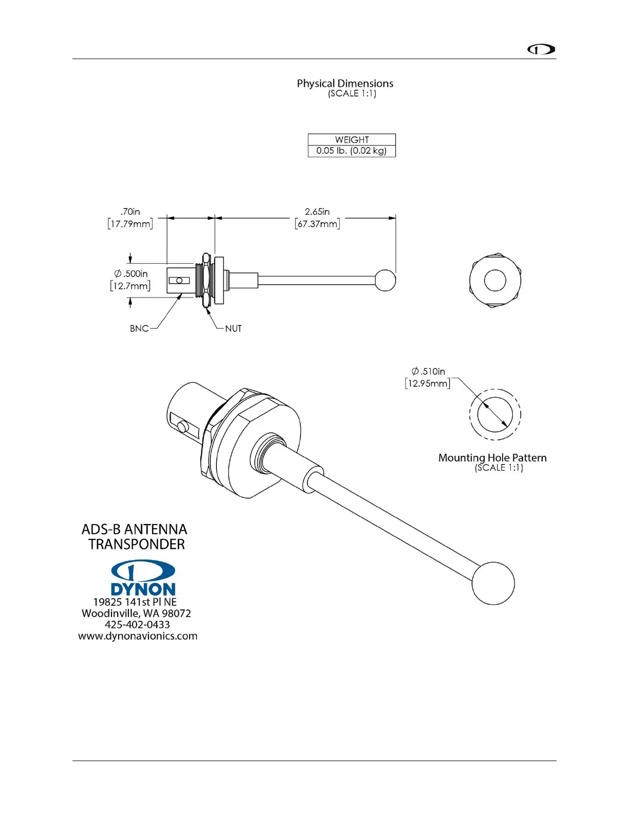 Figure 98: ADS-B Antenna Mounting Dimensions (Not to Scale)