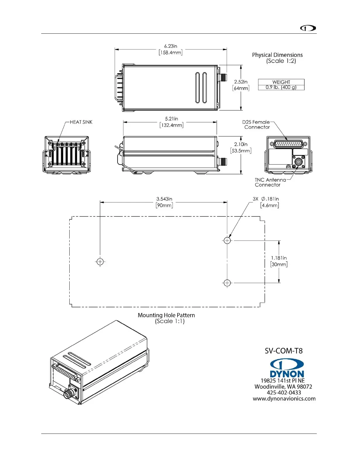Figure 100: SV-COM-T8 Mounting Dimensions and Electrical Connections (Not to Scale)