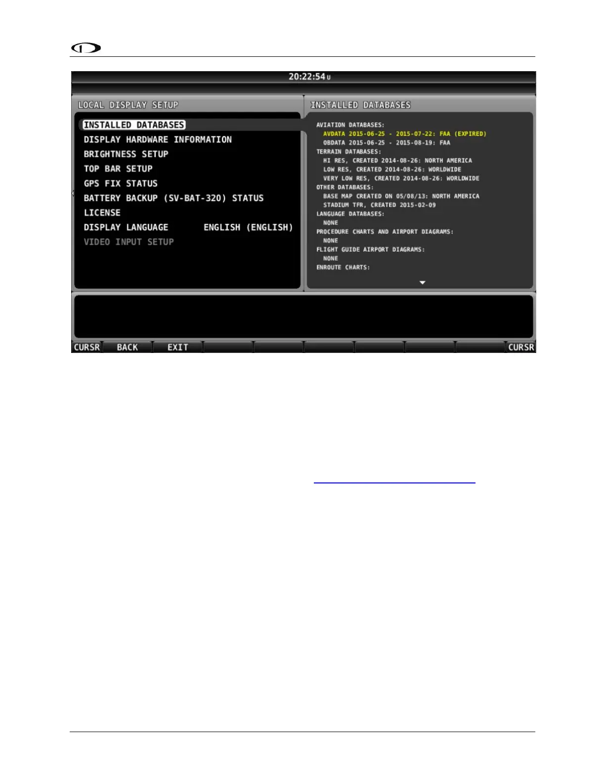 Figure 129: SkyView INSTALLED DATABASES with Expired Database Shown in Yellow
