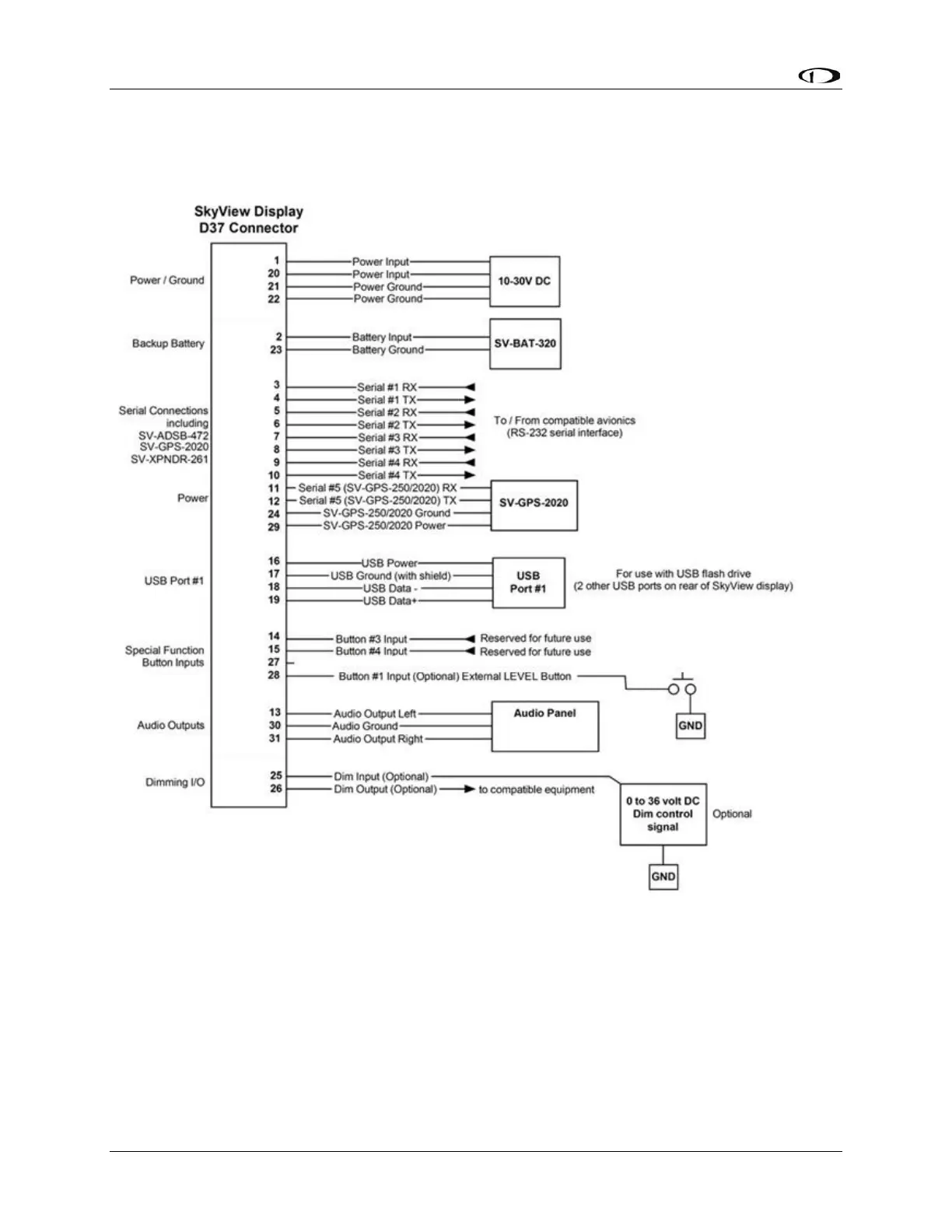 Figure 141: SkyView Display’s D37M Connector Electrical Connections