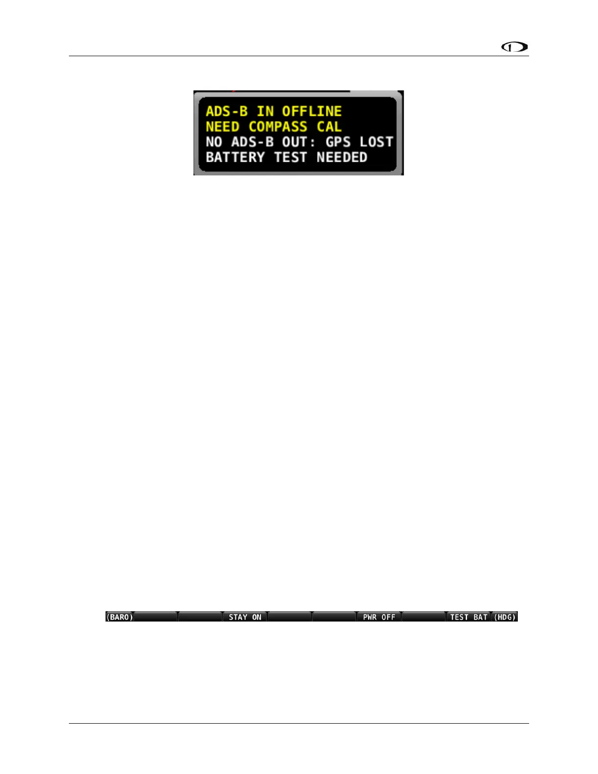 Figure 36: TEST BAT Button Appears After Removing Power to SkyView Display