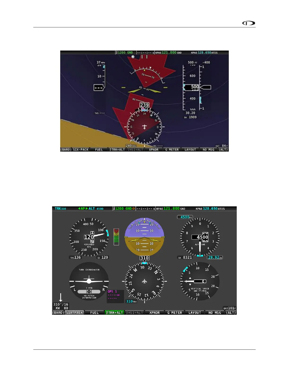 the gauges you’re used to if you’re new to glass. After flying in the six-pack mode, try out the