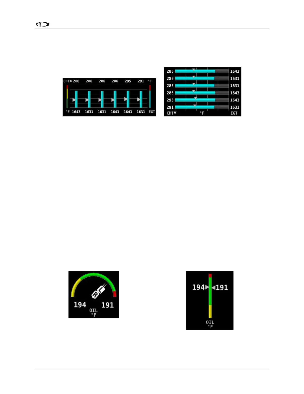 Figure 37 – Example of Combined CHT/EGT Gauge (Vertical and Horizontal Styles)