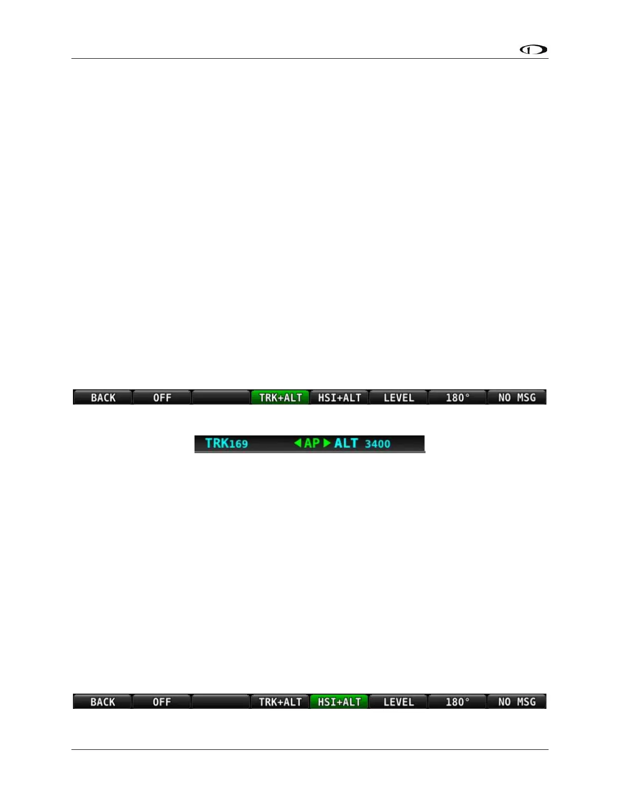 When engaged, the TRK+ALT button will highlighted in green, and the ground track and altitude