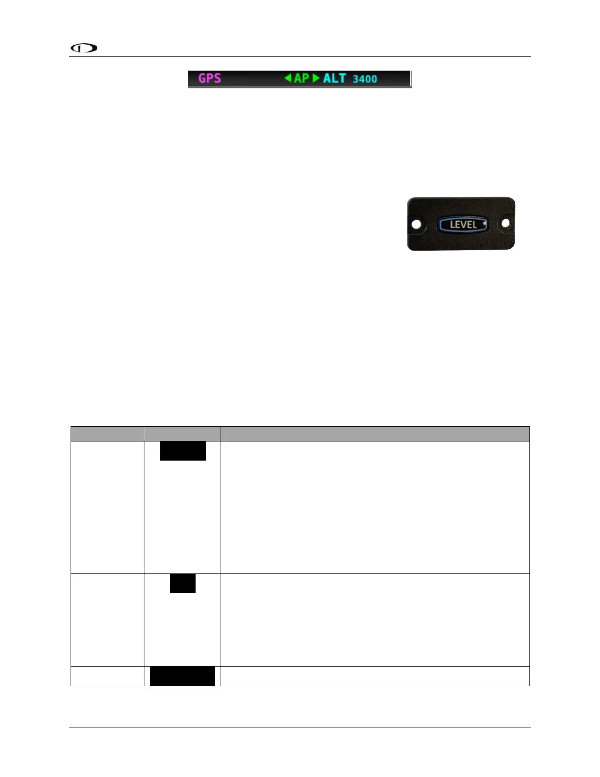 previous altitude or track and it will not respect any bug inputs. When activated, Level Mode