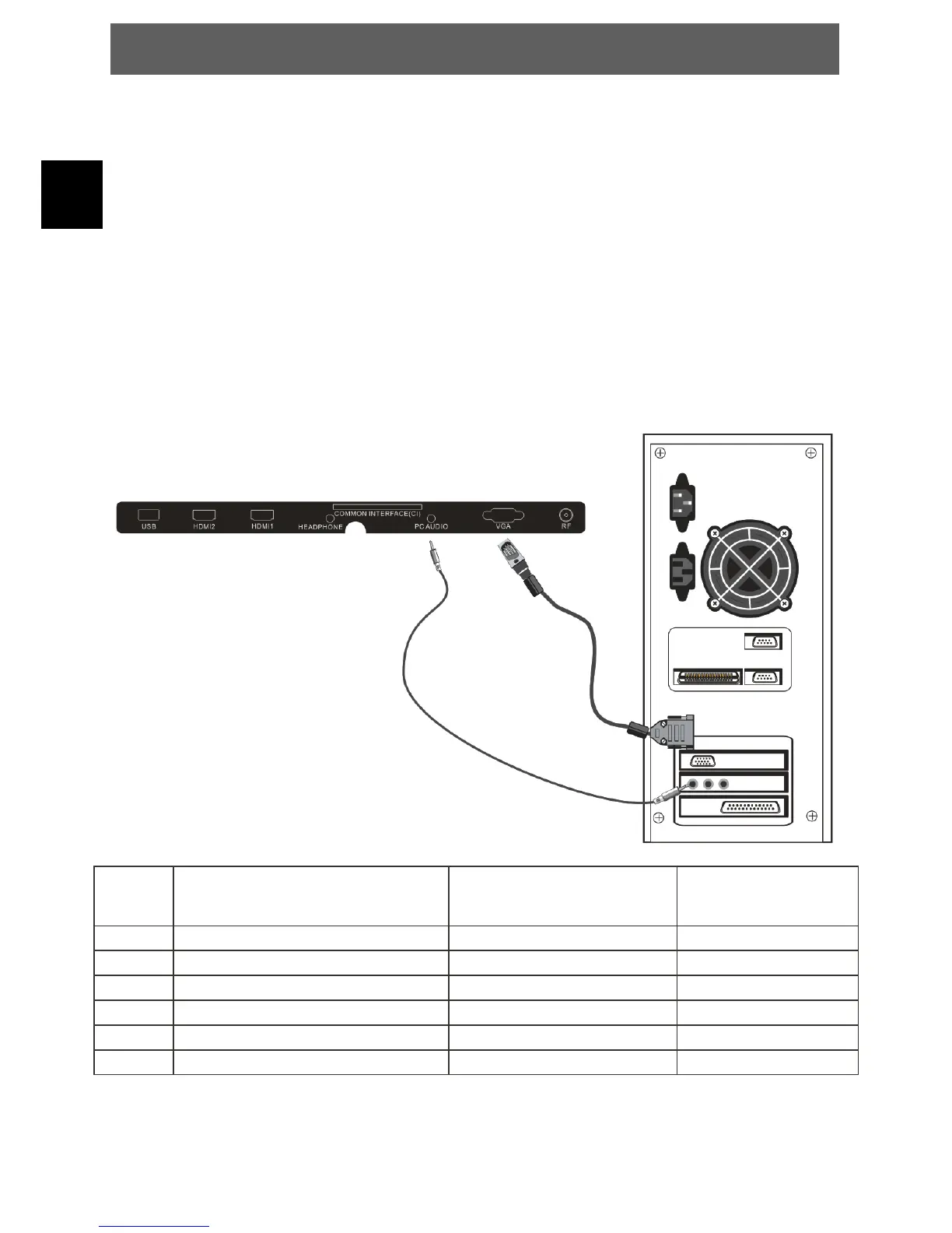 3. Power on the TV set and switch to PC mode (VGA) using the SOURCE