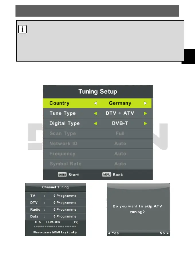 Press ▲/▼ button to select Auto Tuning, then press Enter/► button to the enter.