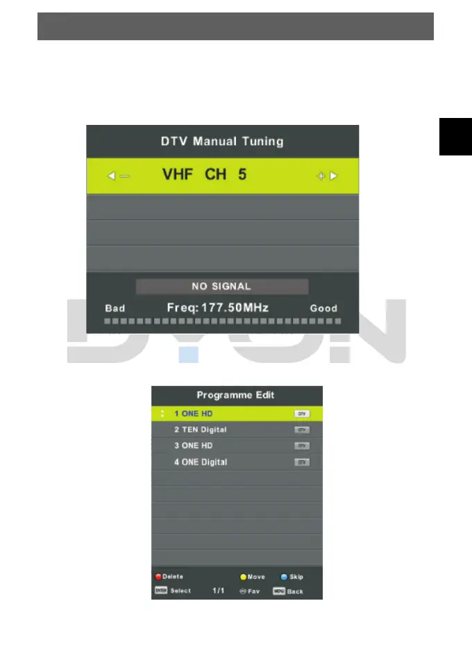2) DTV Manual tuning:
