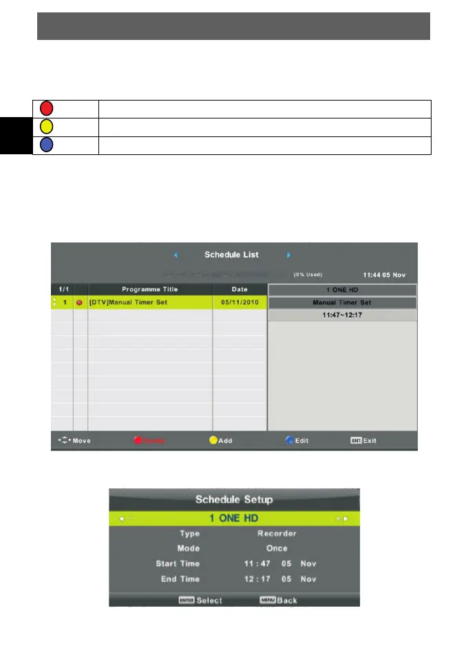 Press ▼/▲ button to select Schedule List, then press Enter button to enter sub-menu.