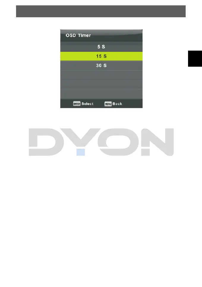 Press ▼/▲ button to select OSD Timer, then press Enter button to enter sub-menu.