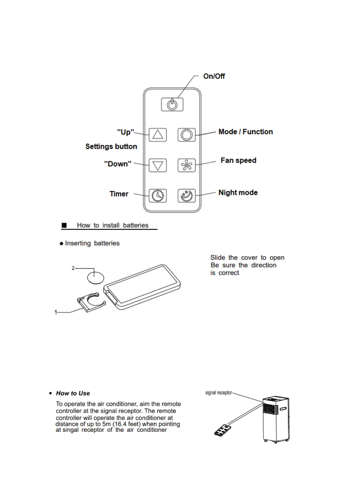 dyras AC-1090 - Using the Appliance - Remote Control; Remote Control Overview; Battery Installation; Remote Control Operation