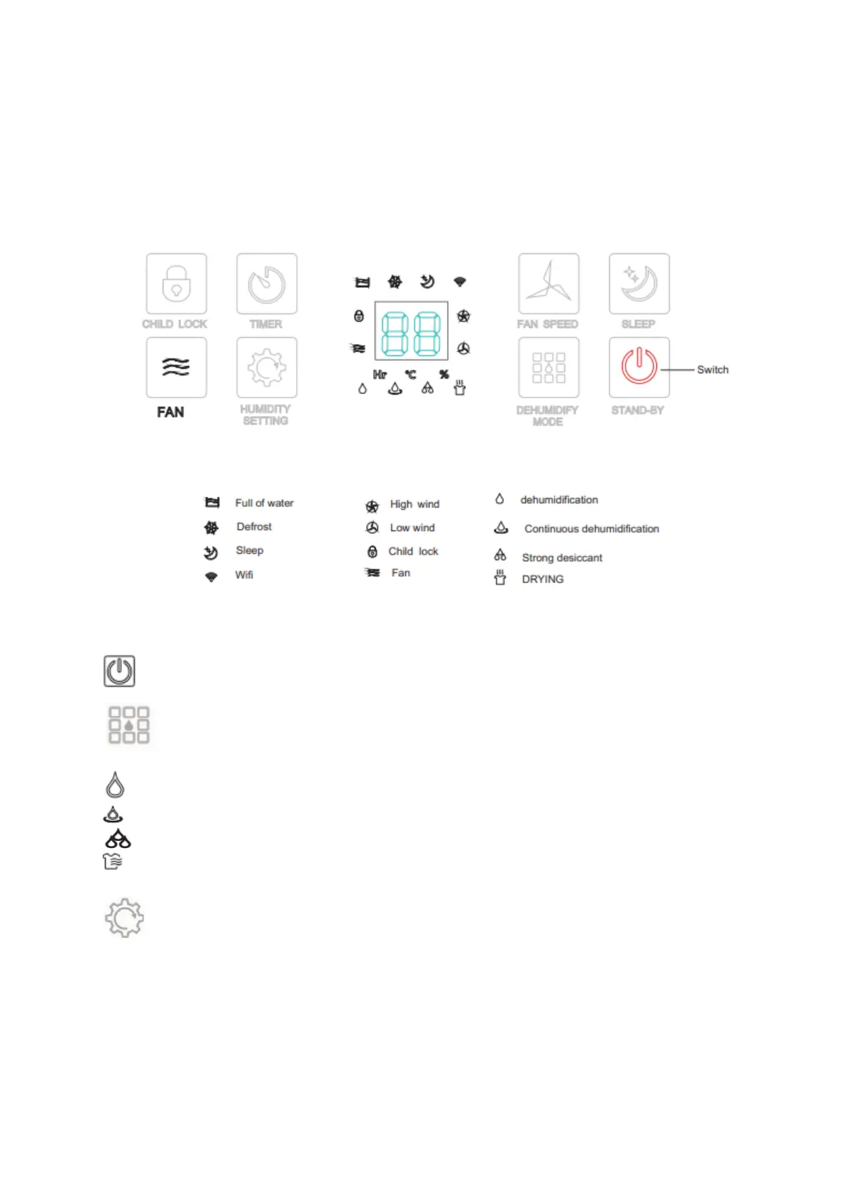 Dehumidification mode: Press to enter the mode selection state and you can