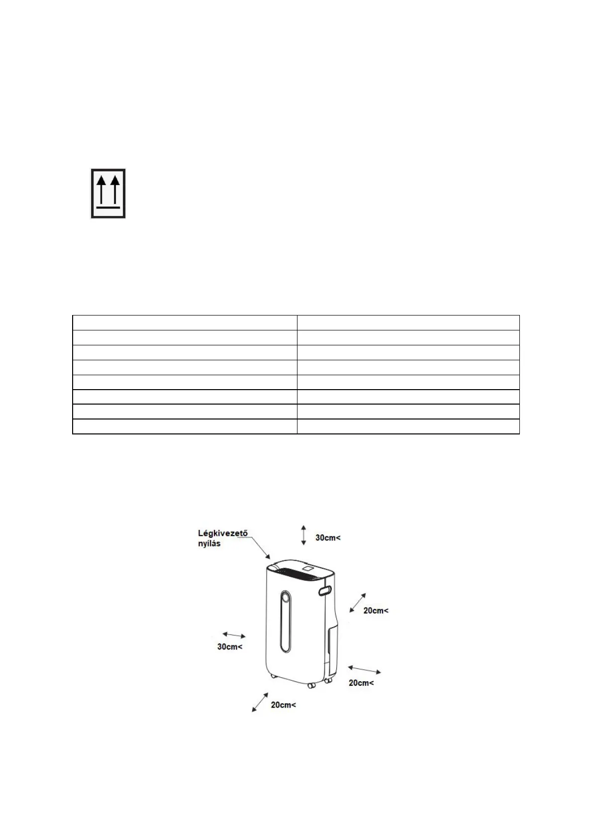 helyezze legalább 70cm távolságra a párátlanítót a többi készüléktől!