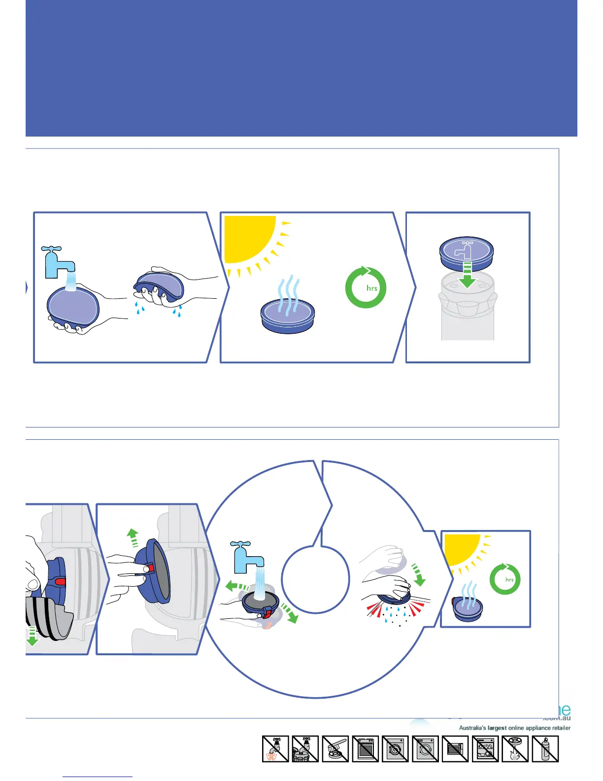 Wash lters with cold water regularly or as required.
