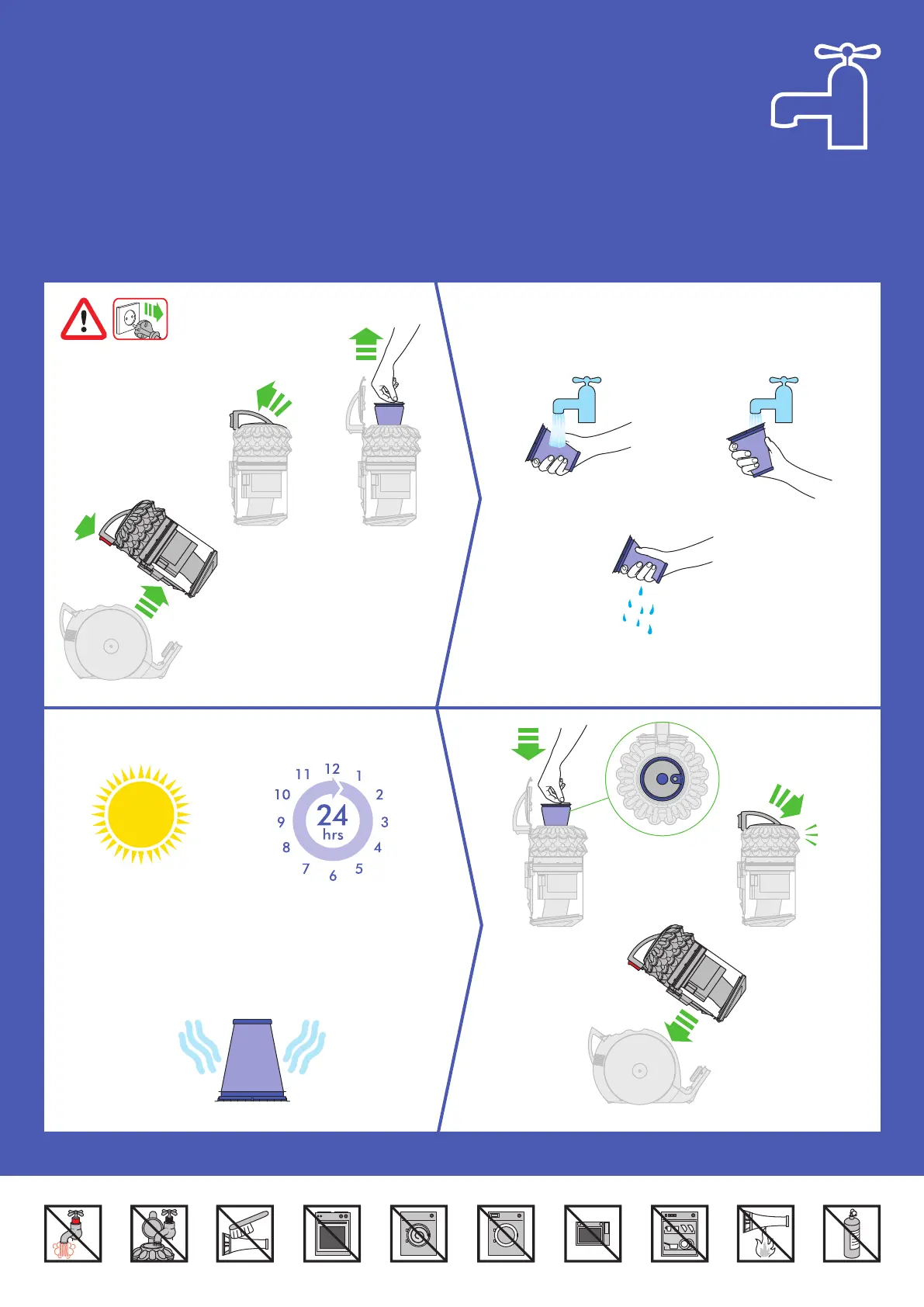 Lavez le filtre à l’eau froide au moins une fois par mois.