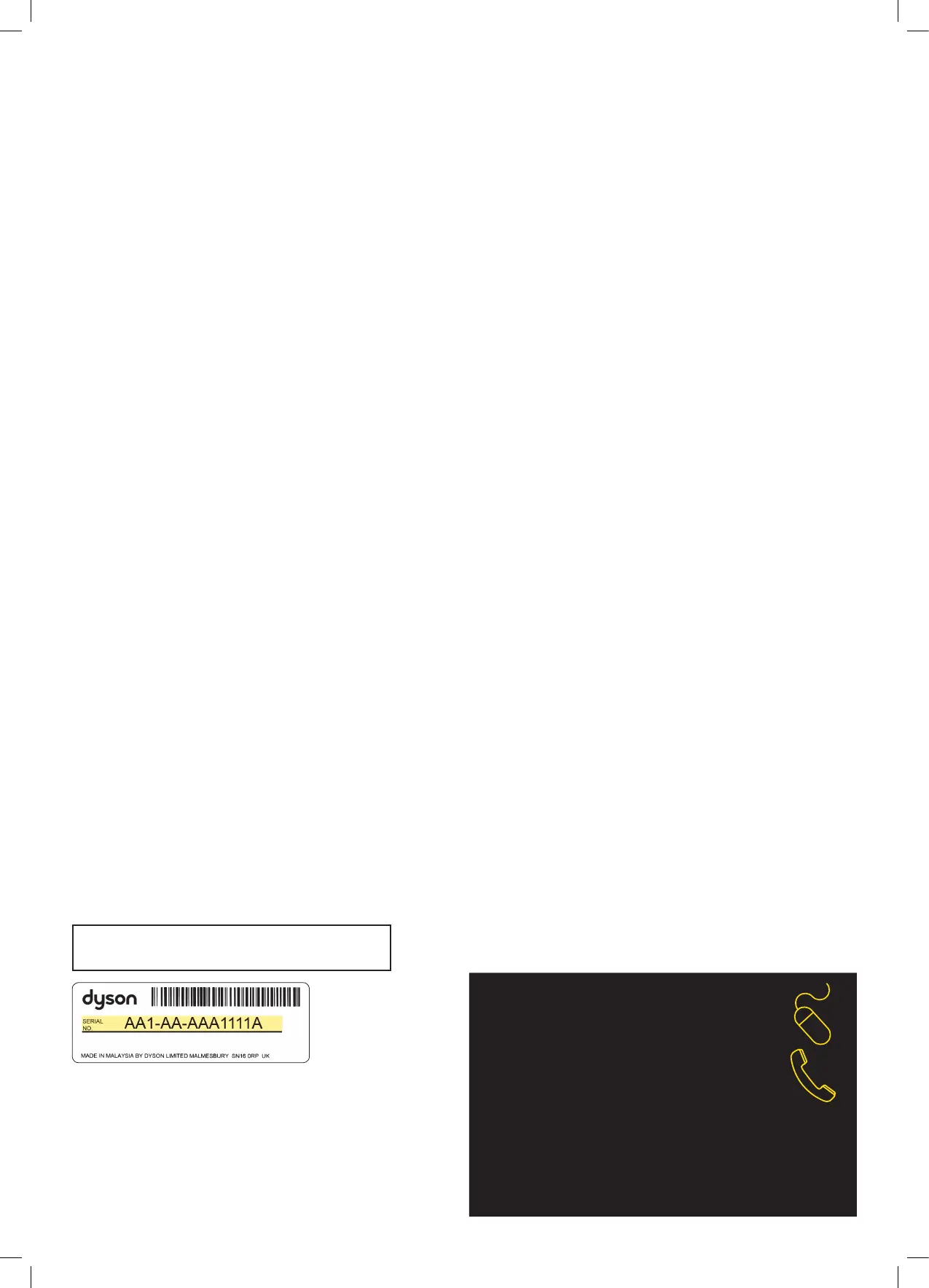 l’assistance téléphonique du Service Consommateurs Dyson. Le numéro de série,