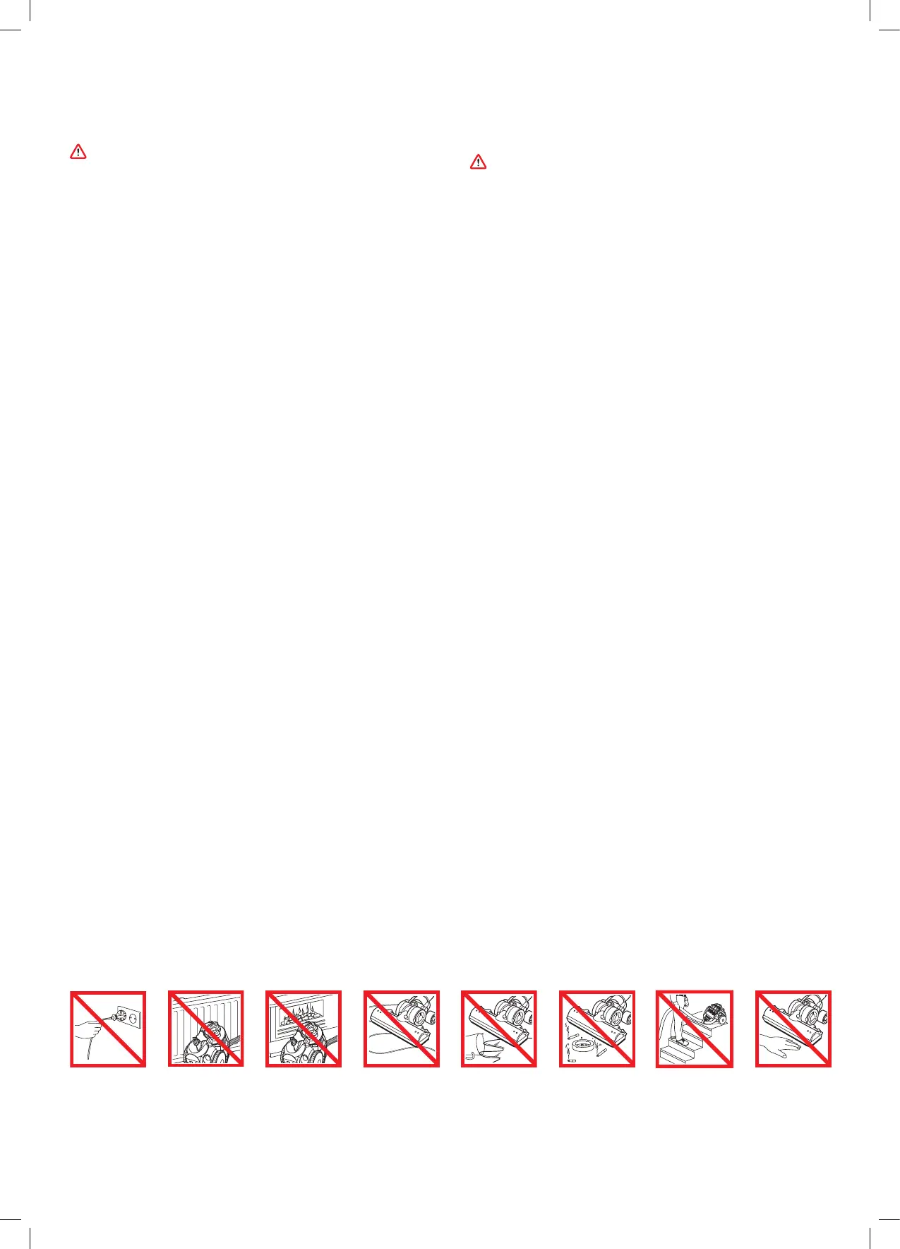16. Ne használja a porszívót égő vagy füstölő tárgyak, például cigaretta, gyufa vagy