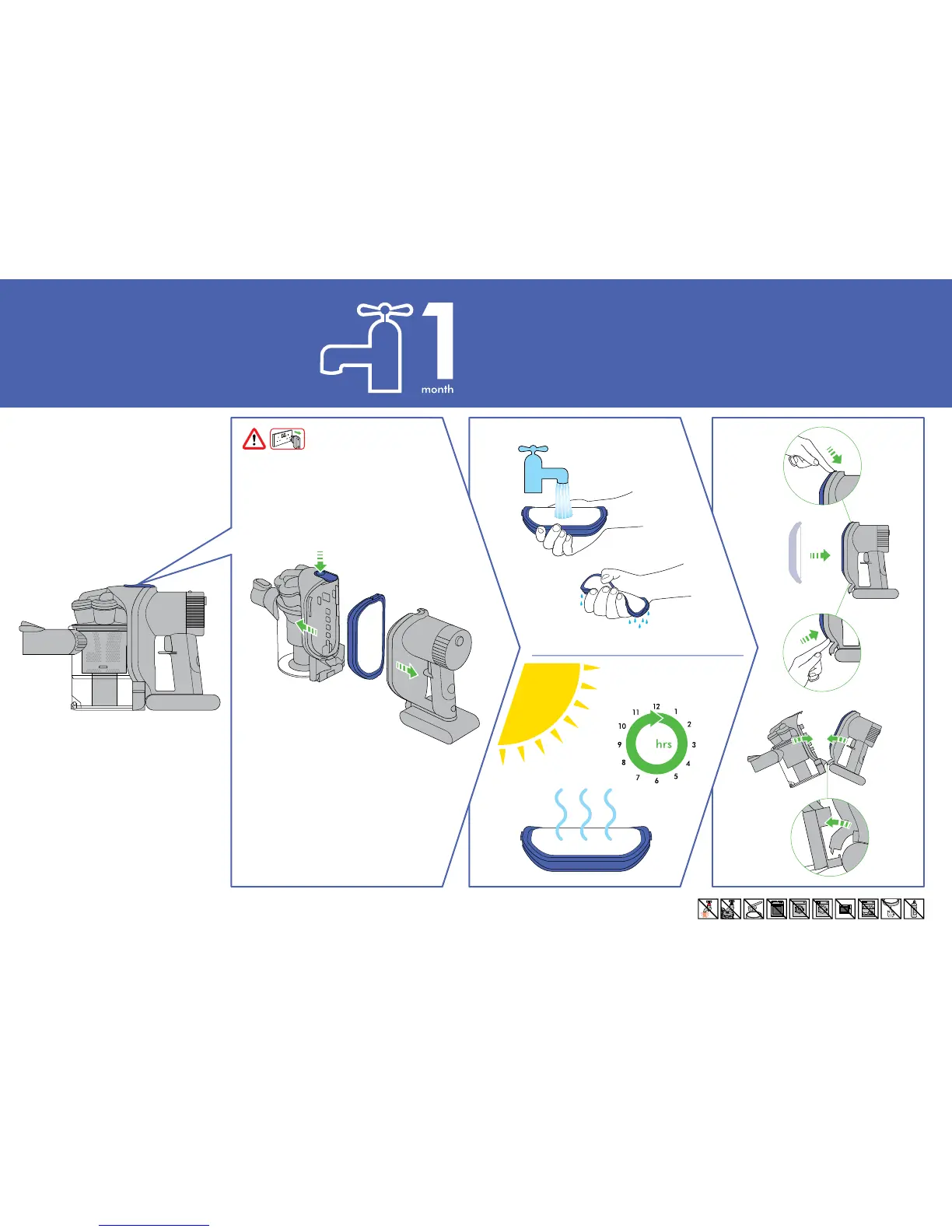 Wash filter with cold water at least every month.