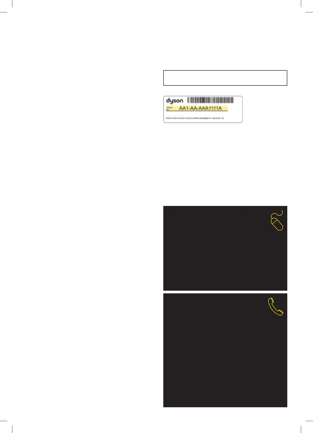 about your Dyson appliance, call the Dyson Helpline with your serial