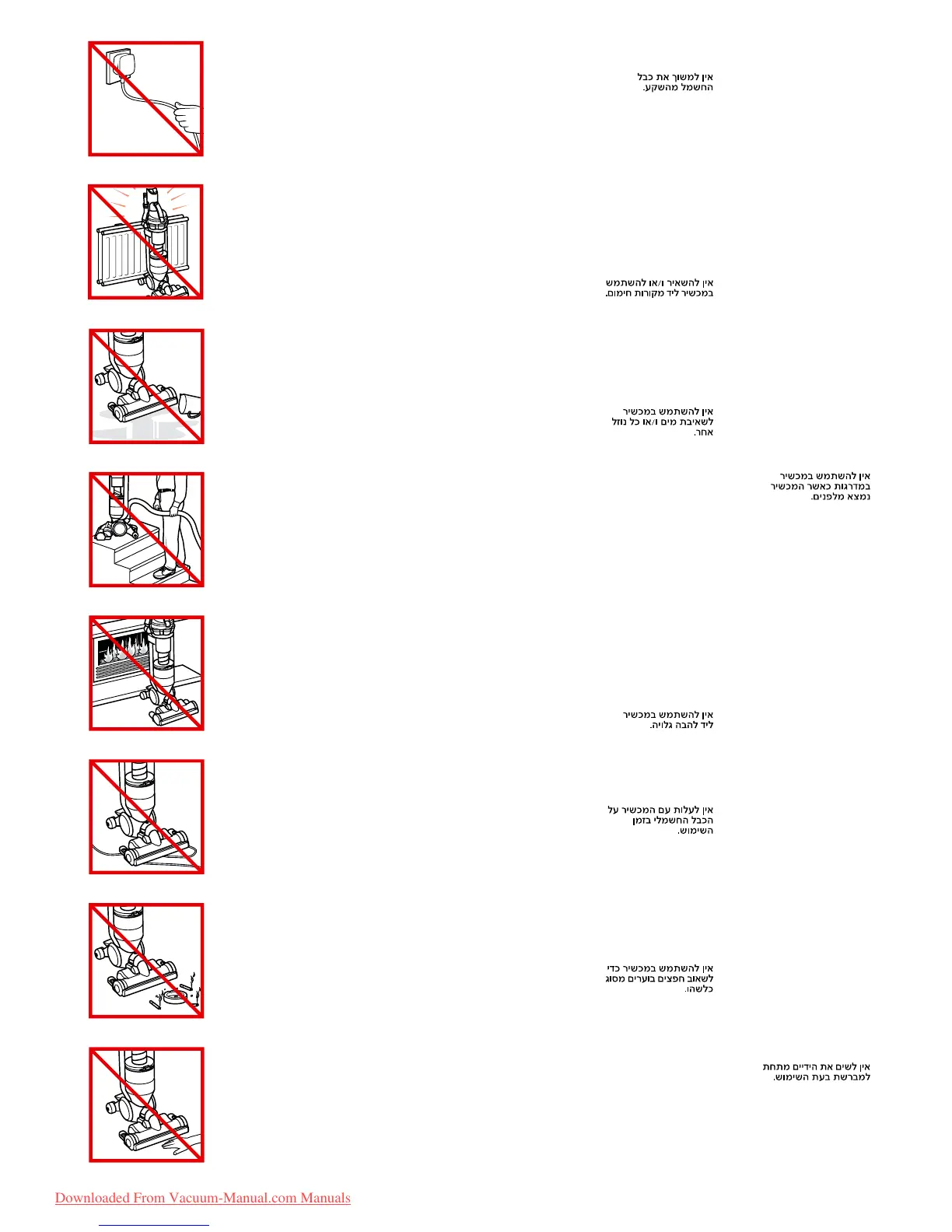 RU Не пылесосьте горящие объекты.