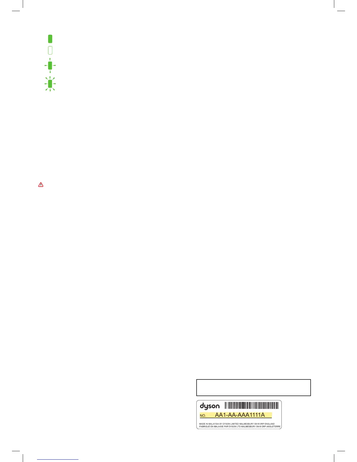• Votre aspirateur Dyson est garanti contre tout défaut de matériau et de main-