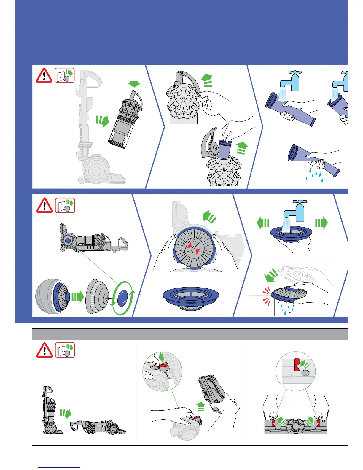 Dyson DC50 - FILTER MAINTENANCE AND DISASSEMBLY; Washing Your Dyson Filters; Base Plate Disassembly