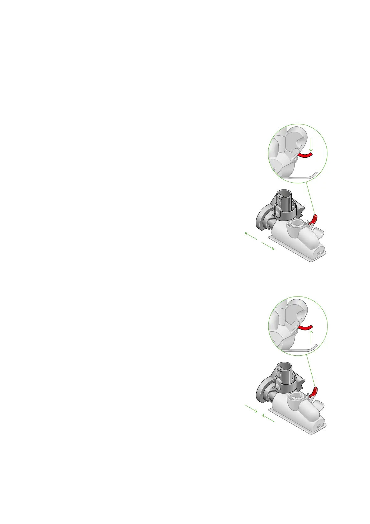Check the red locking lever is in the unlocked position. Align the cleaner