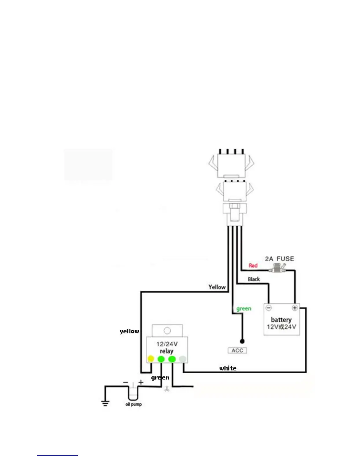 3. Yellow wire connects to oil pump or circuit control wires