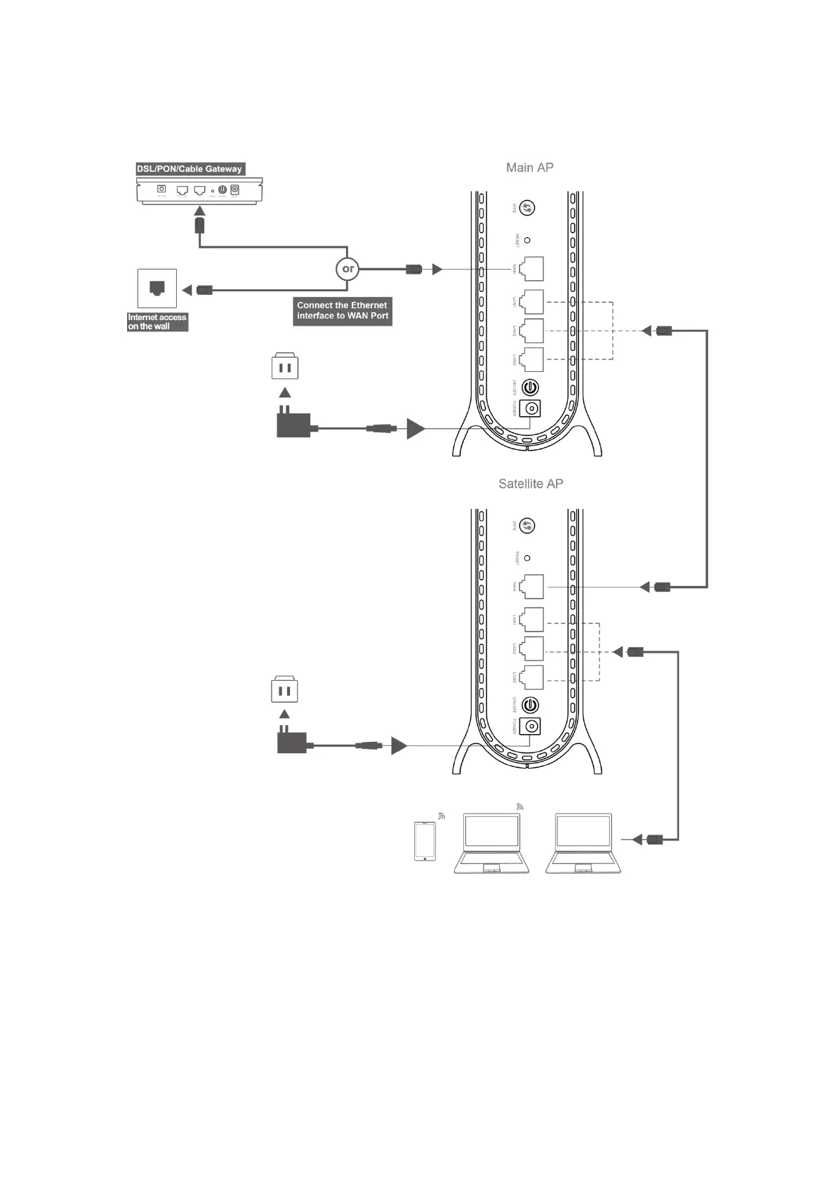 03 Connect the Satellite AP to LAN port of your Main AP via network cable.