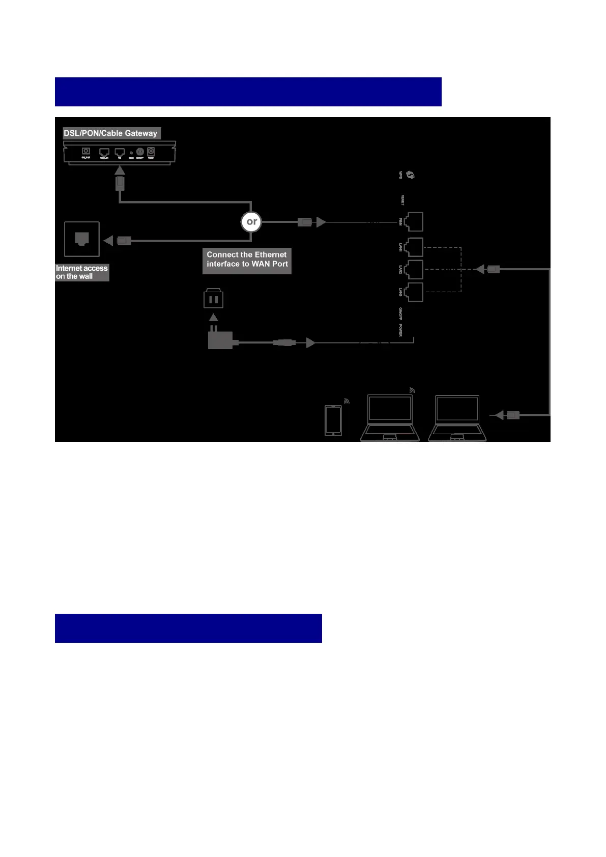 01 Note the DSL/PON/Cable Gateway must be connected to the WAN port of DZS Router.