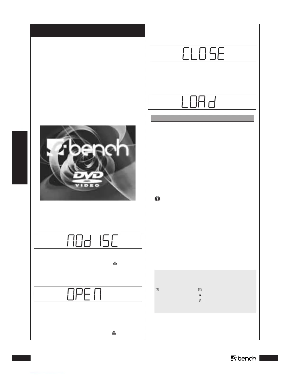 “Load“ no mostrador, no lado dianteiro do DVD-Player; no