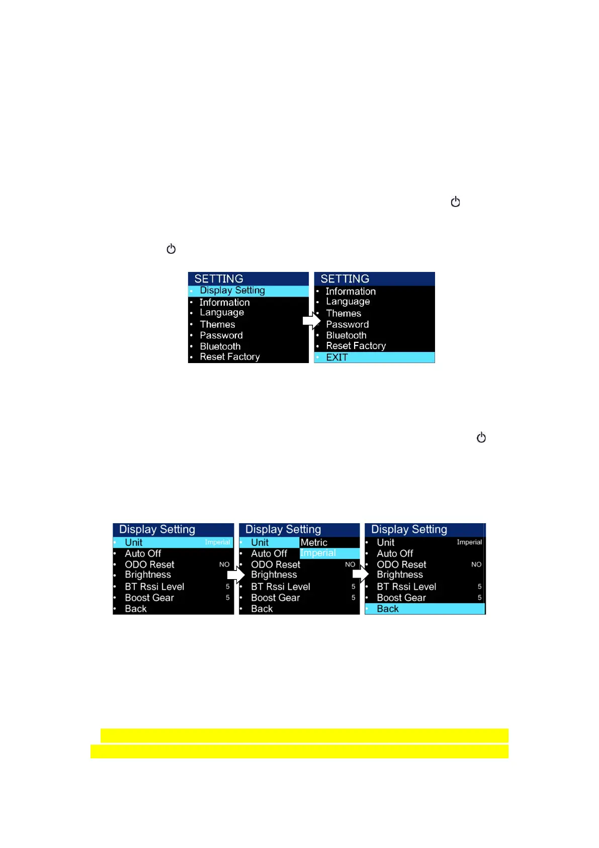 after entering the settings, select "Metric"/"Imperial", click "
