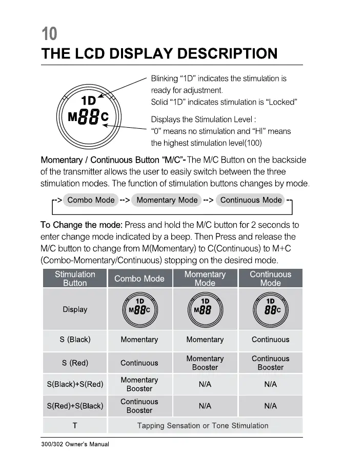 M/C button to change from M(Momentary) to C(Continuous) to M+C