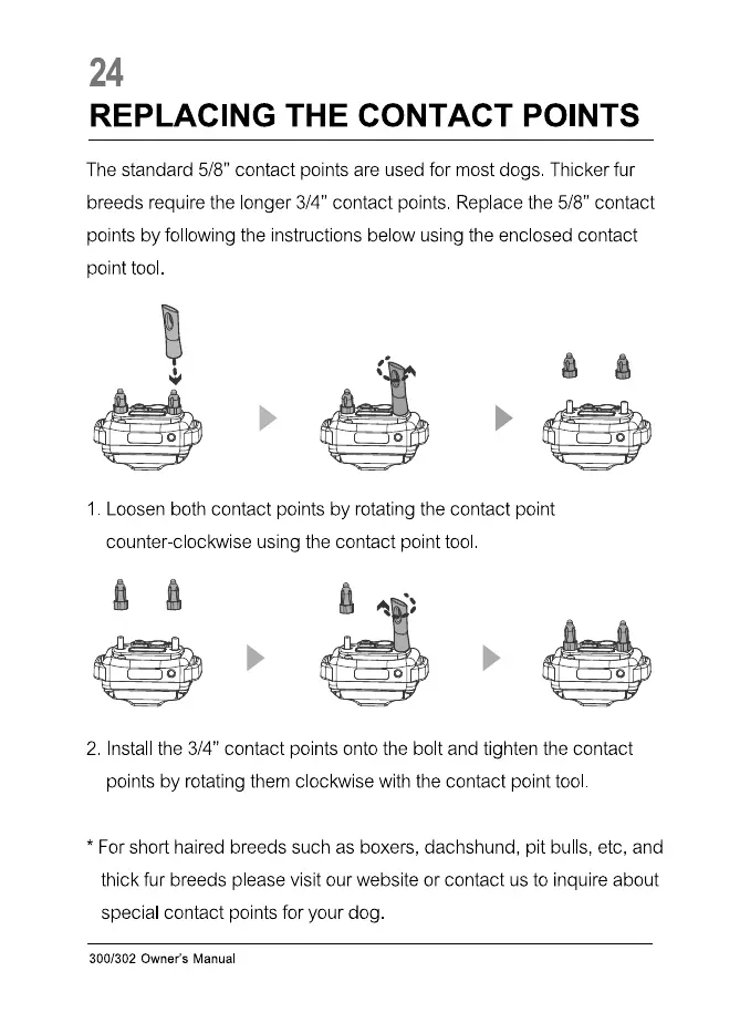 The standard 5/8" contact points are used for most dogs Thicker fur