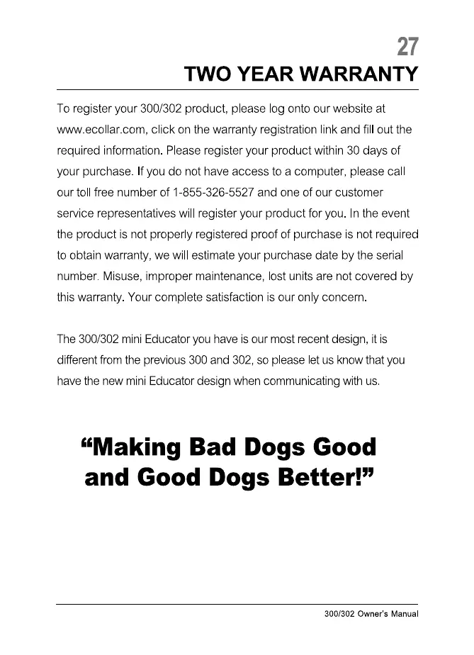 To register your 300/302 product, please og onto our website at