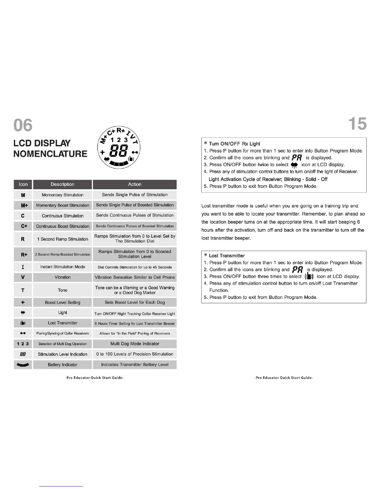 E-Collar Technologies Pro Educator PE-900 - LCD DISPLAY NOMENCLATURE