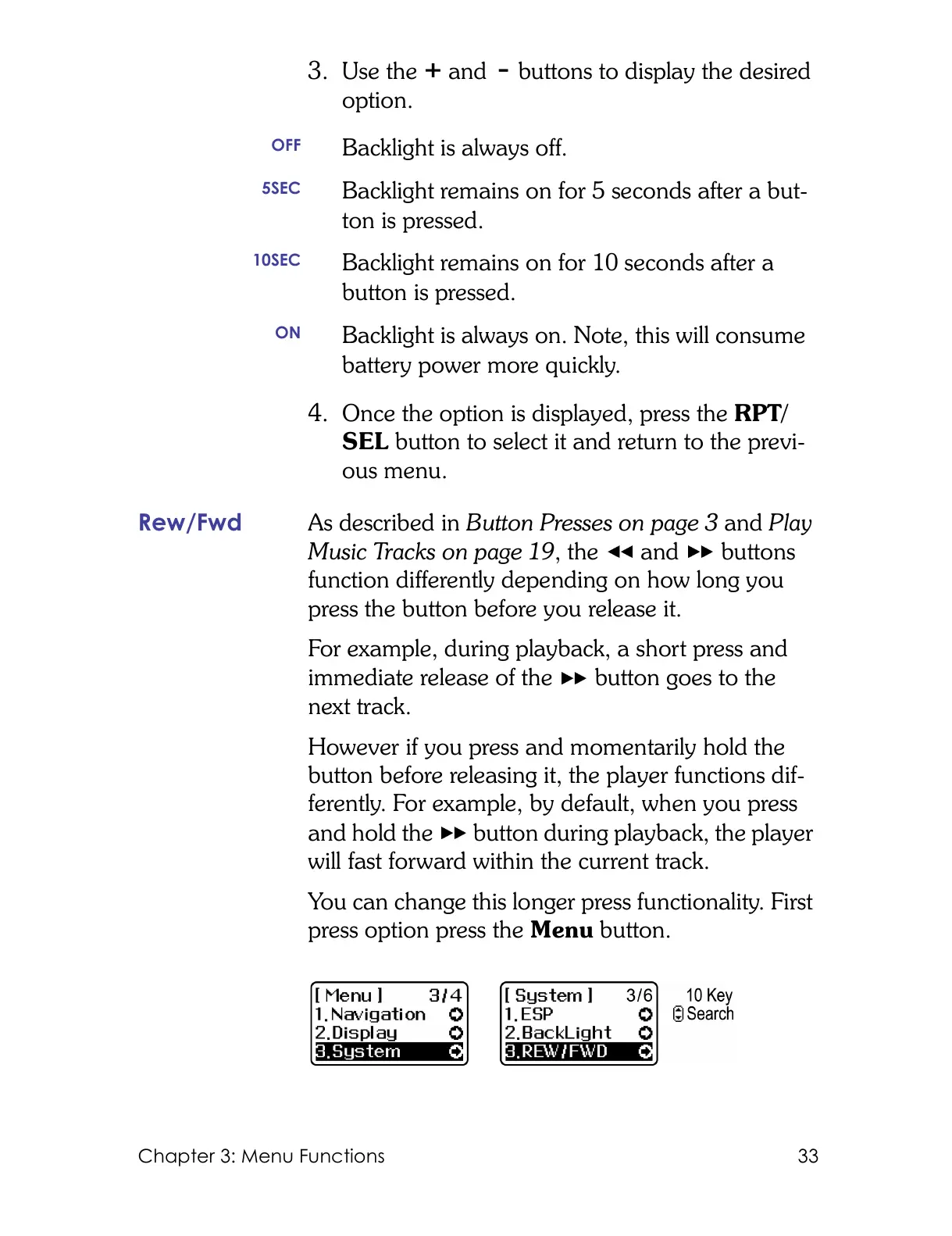 Rew/Fwd As described in Button Presses on page 3 and Play