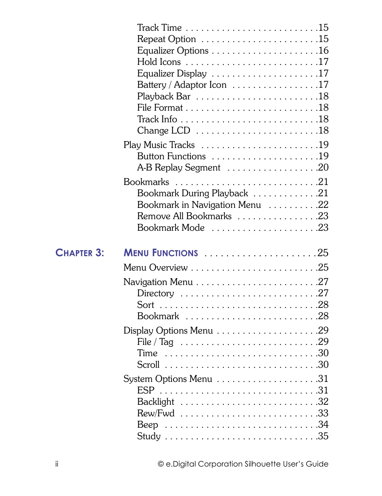 CHAPTER 3: MENU FUNCTIONS . . . . . . . . . . . . . . . . . . . . . 25