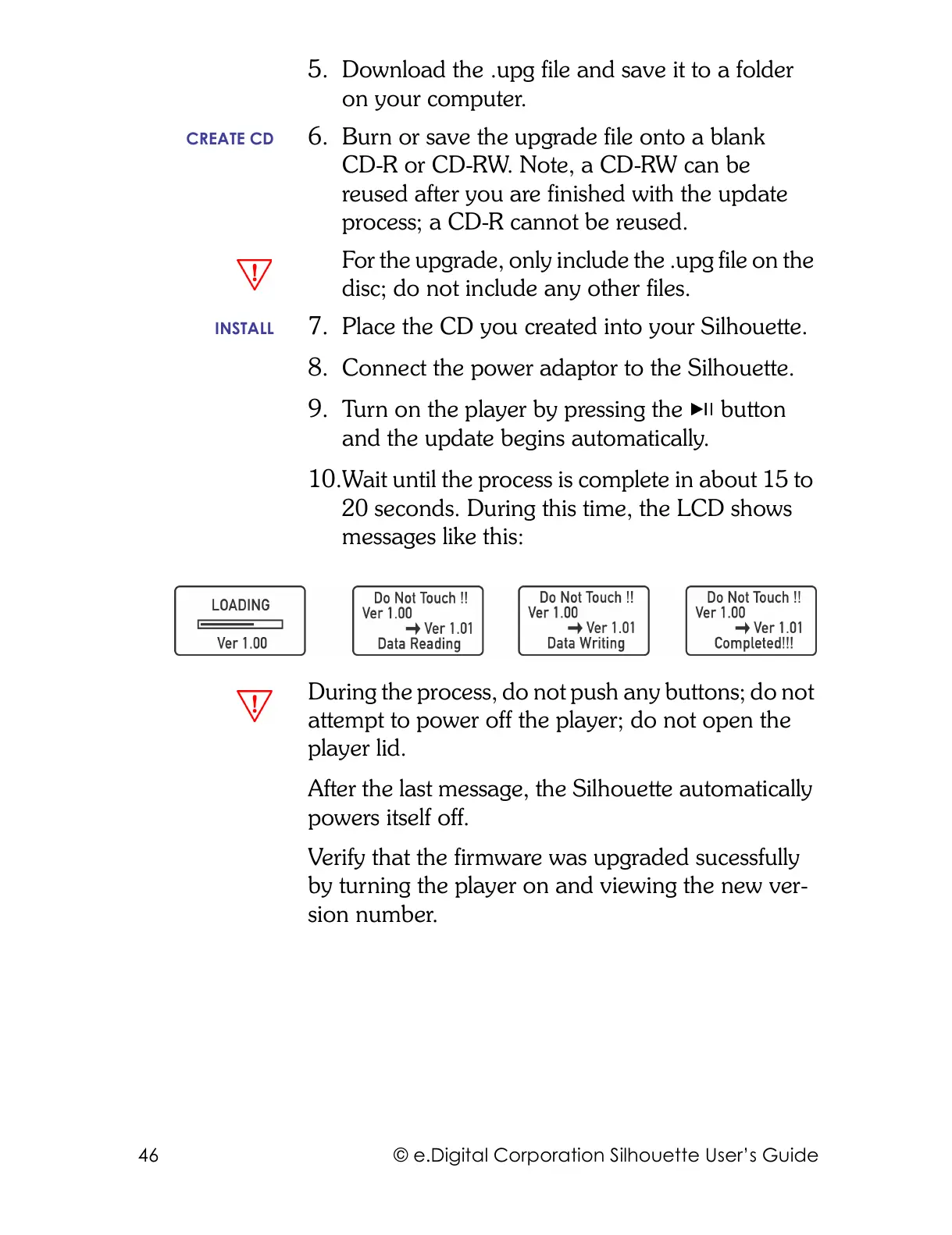 CREATE CD 6. Burn or save the upgrade file onto a blank
