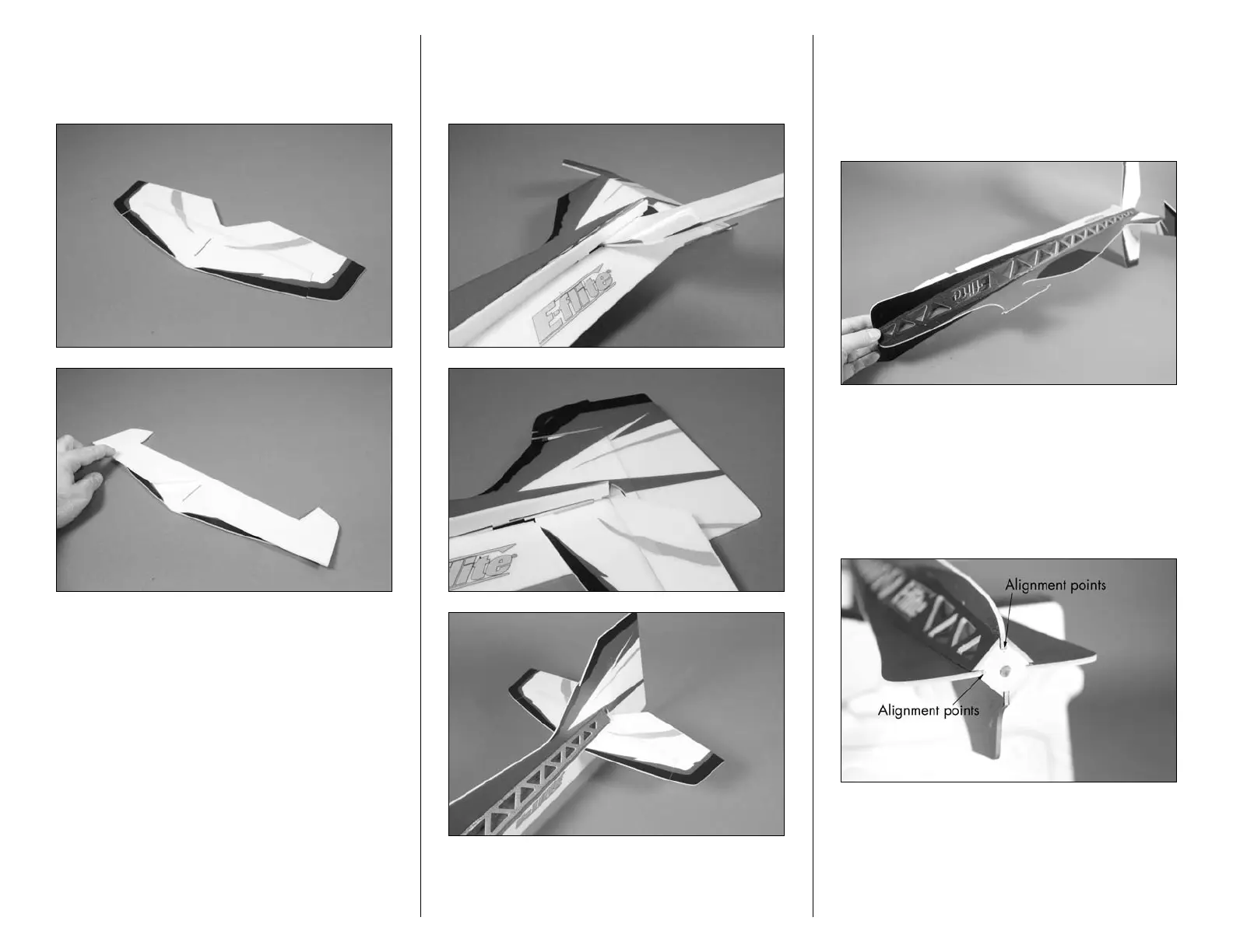 the fuselage. Unfold the elevator and position