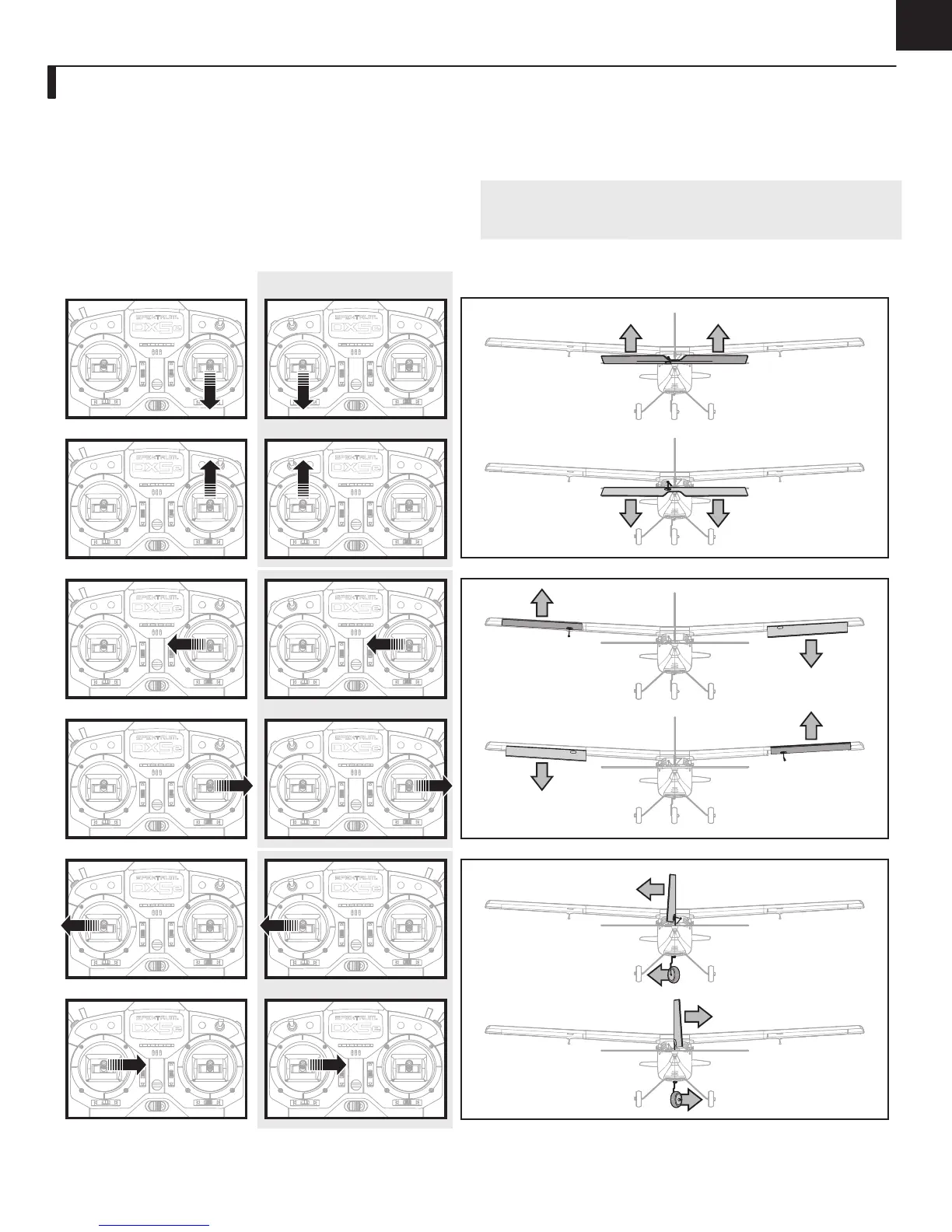 to adjust control surfaces. Move the transmitter control sticks so the model’s