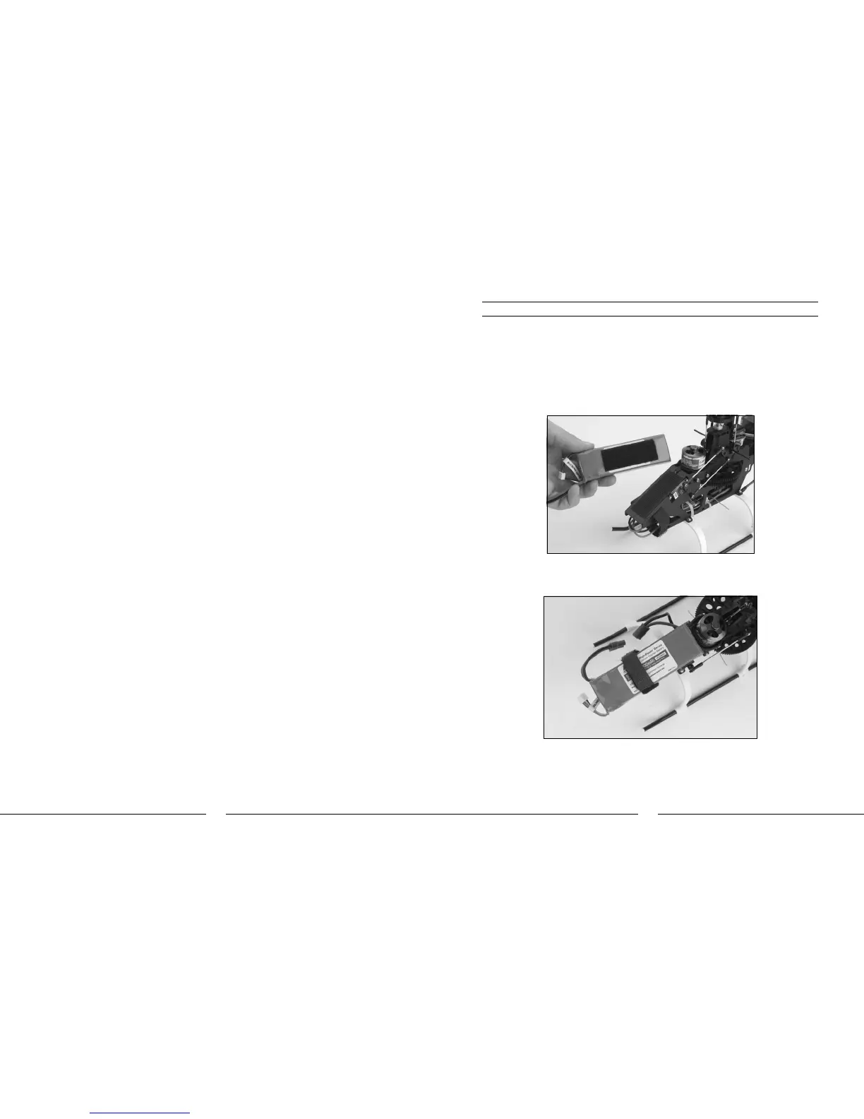 After programming your chosen transmitter with the suggested initial settings, install the flight battery