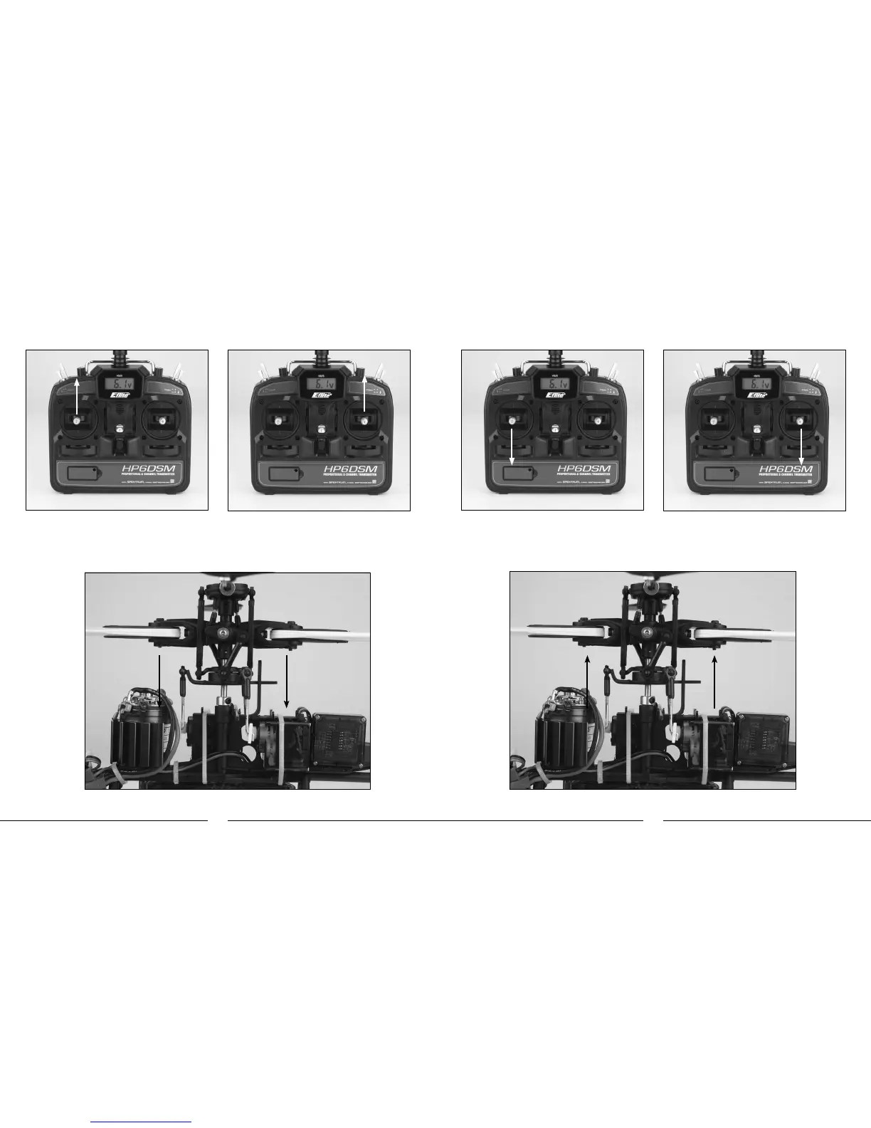 Position the helicopter to view it from the left or right side. Move the throttle/collective stick up and down to check