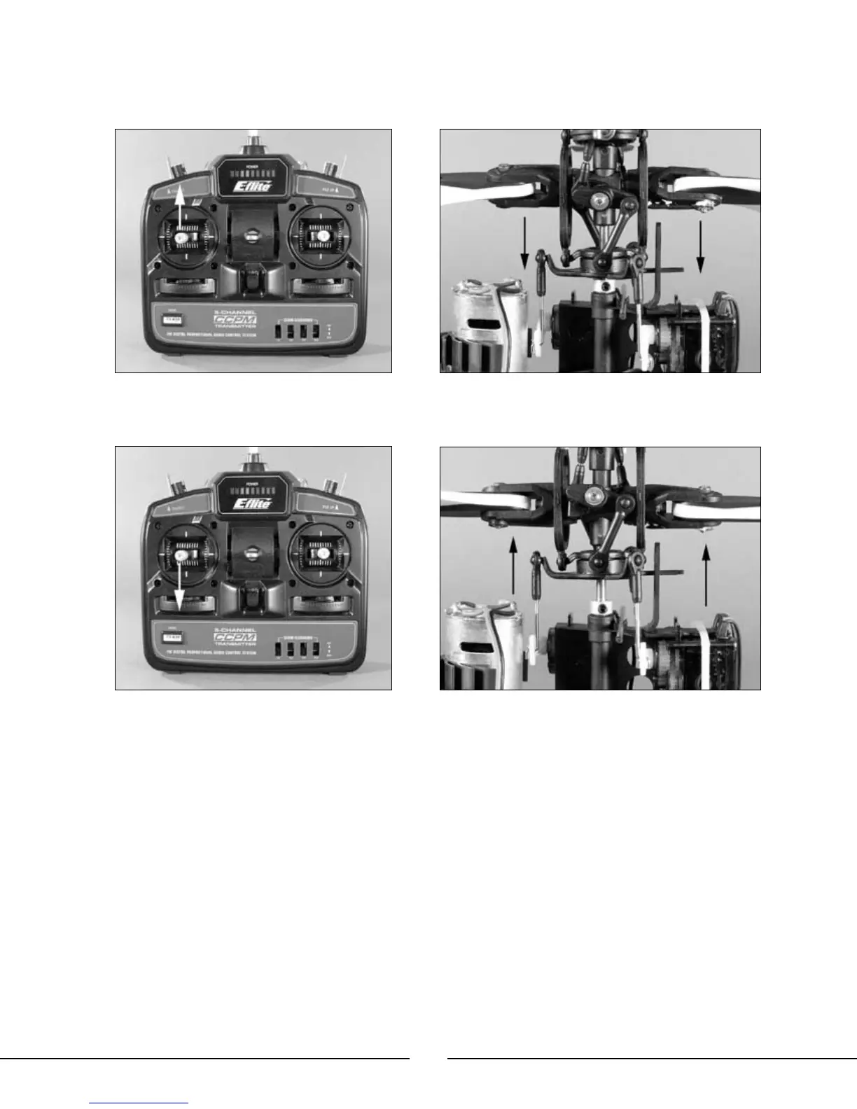 With the stick pulled back down, the swashplate should raise, decreasing the pitch of the main blades.