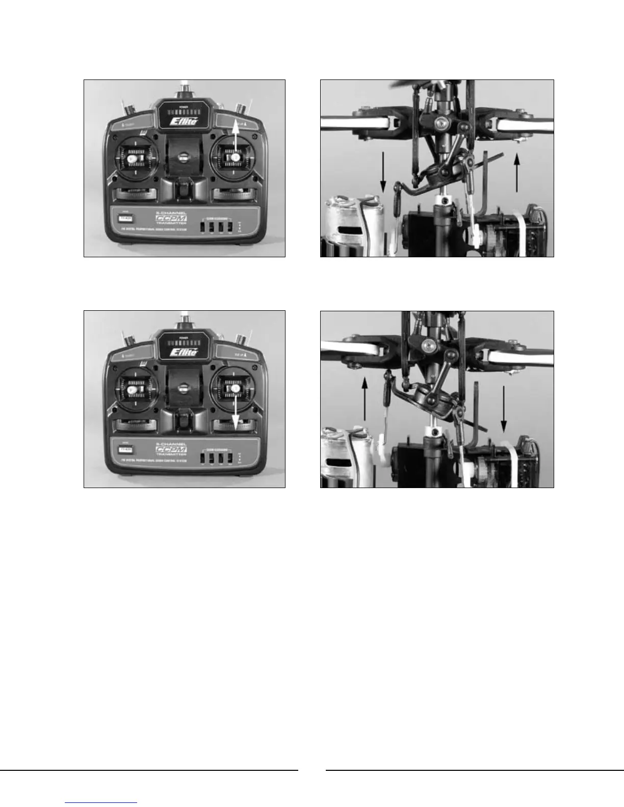 Again viewing the helicopter from the left or right side, move the right-hand stick forward and aft to check elevator