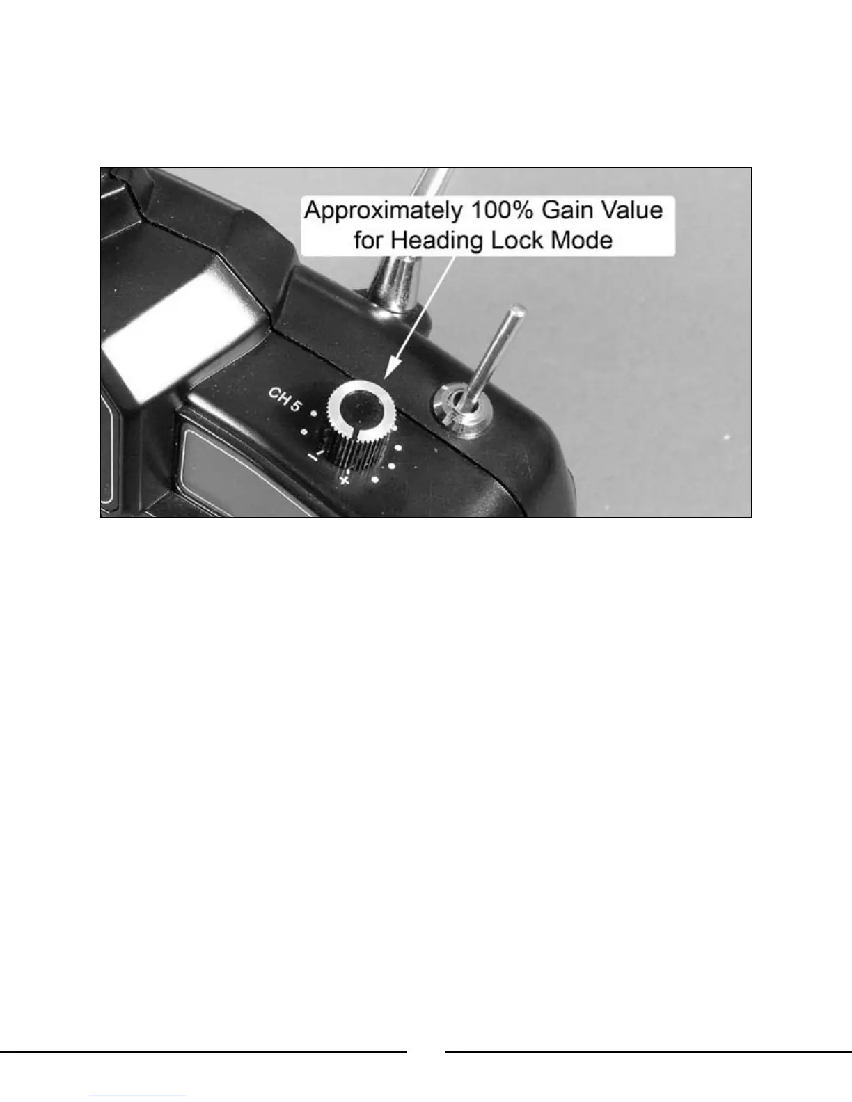 type gyro, is to find the highest gain setting value at which the tail of the helicopter will not twitch quickly from
