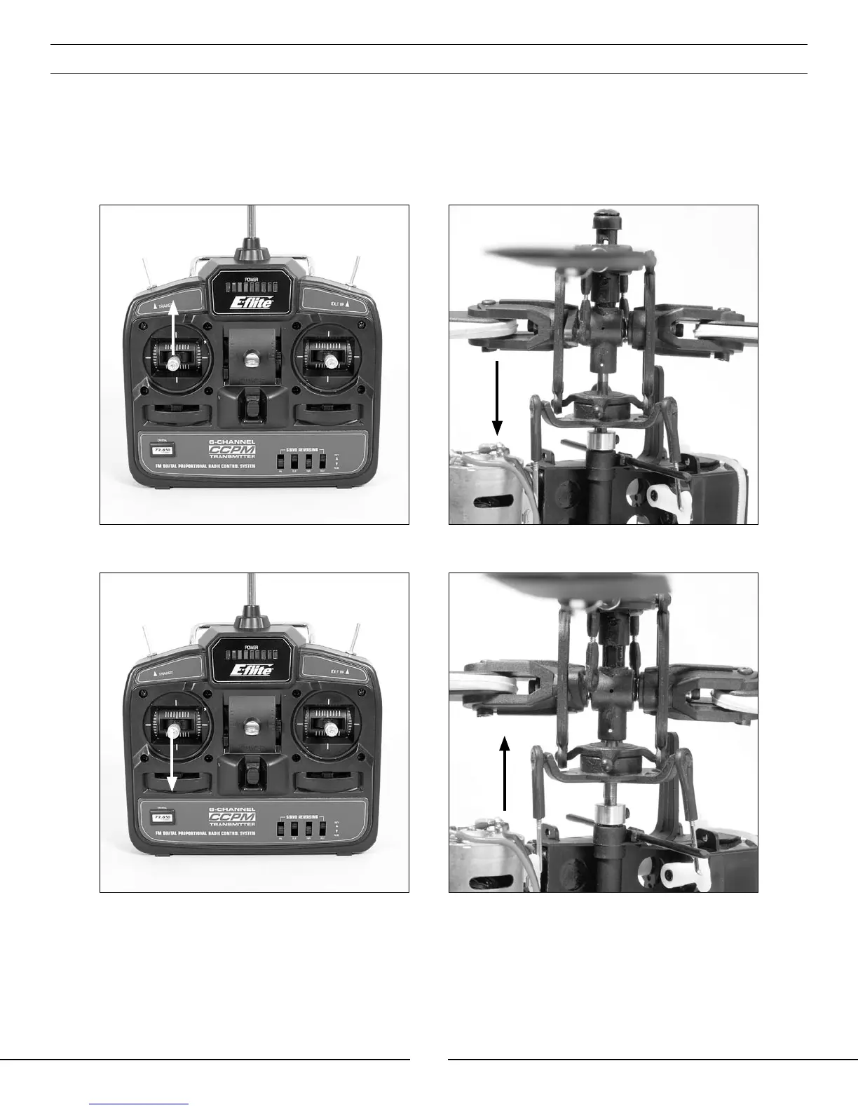 pitch of the main blades. With the stick pulled back down, the swashplate should raise, decreasing the pitch of