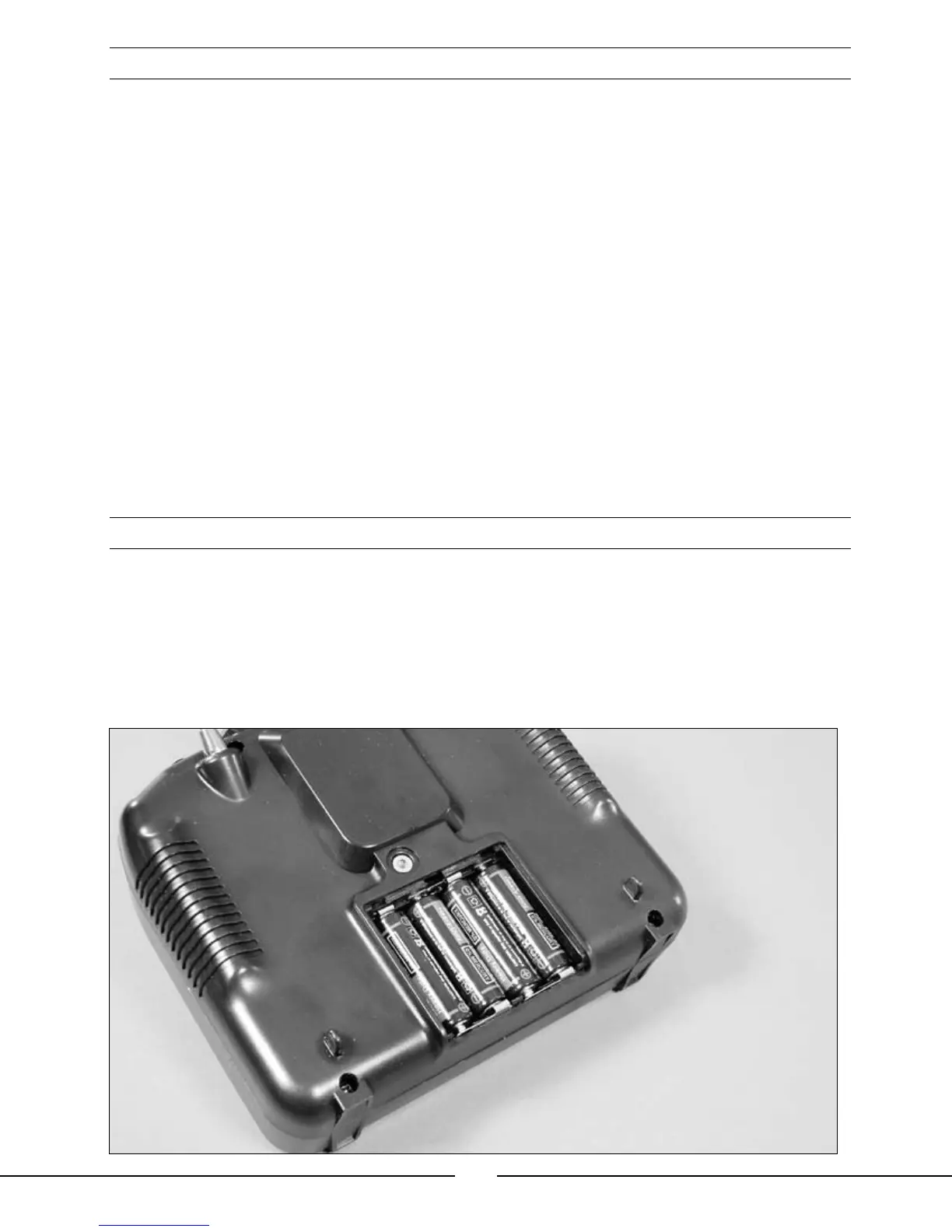 Install the 4 included “AA” batteries in the transmitter. Check the power level of the batteries and operation of the